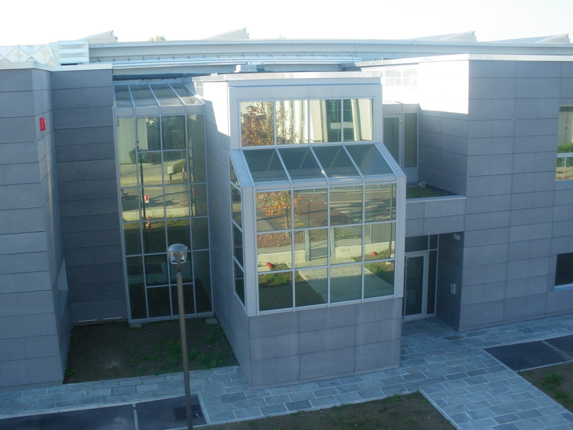 Per questo edificio commerciale sono state realizzate le facciate continue, gli infissi interni ed esterni, carpenterie metalliche, recinzioni e rivestimento esterno in lamiera di alluminio tipo Aluco-bond.