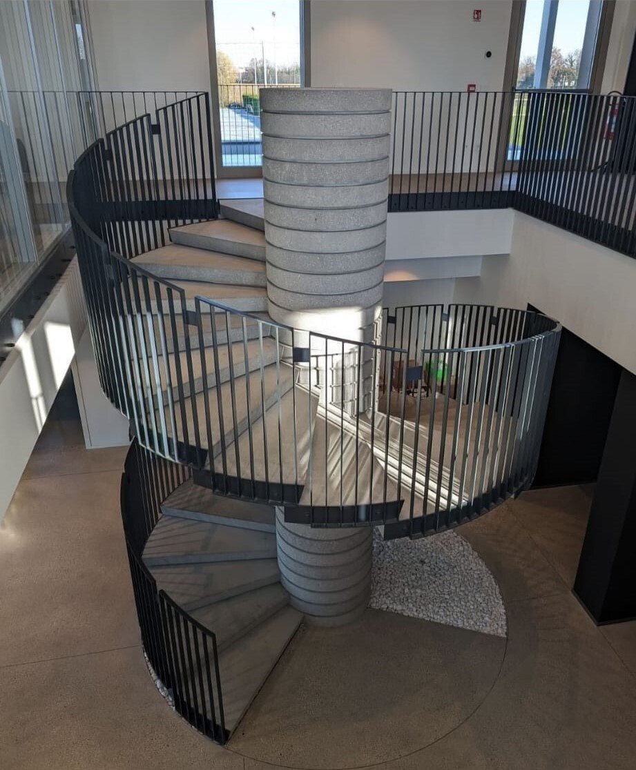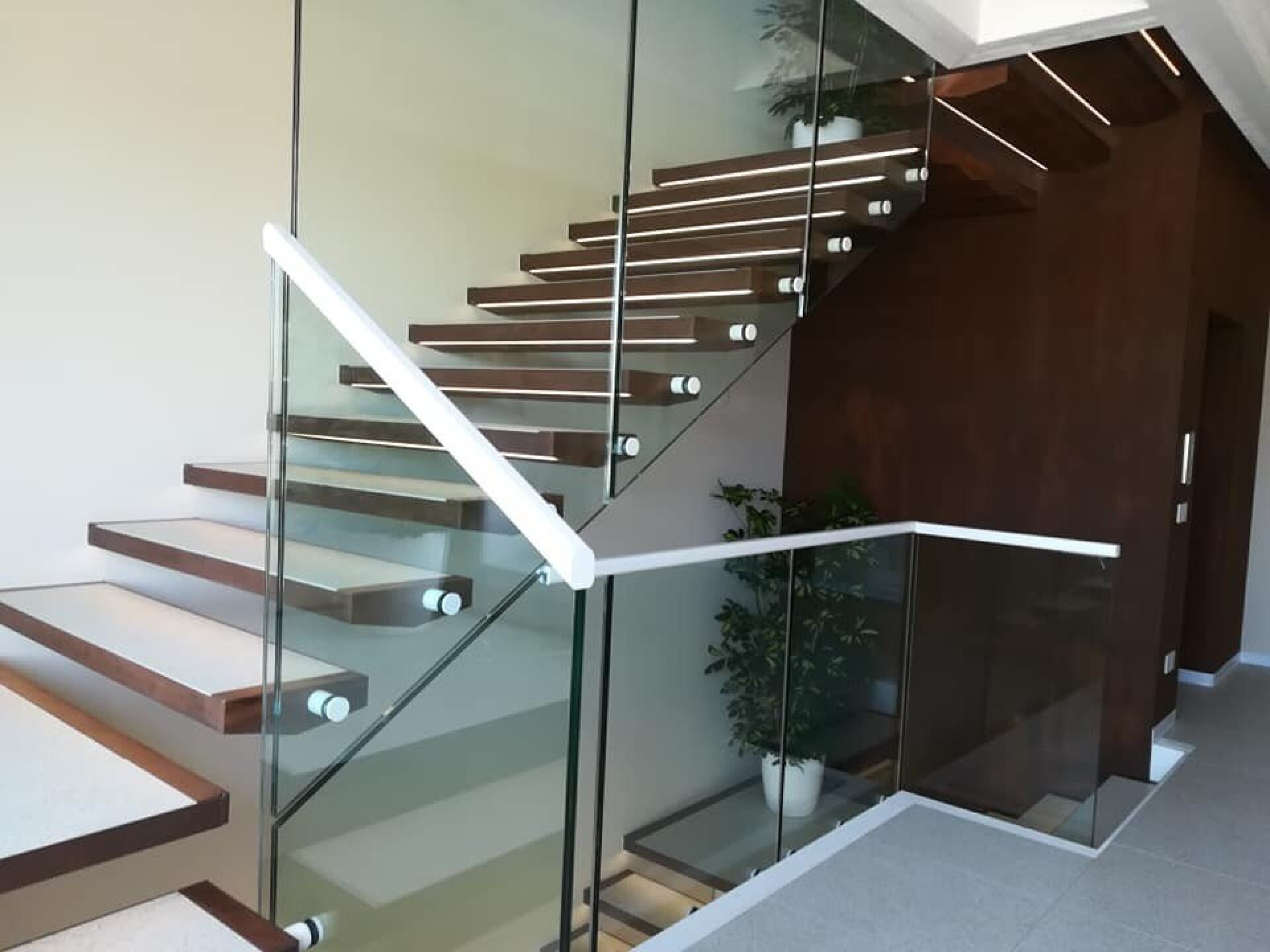 Progettazione e realizzazione di strutture di carpenteria metallica, serramenti, scale e parapetti in vetro stratificato extrachiaro per intervento di ampliamento di edificio commerciale.