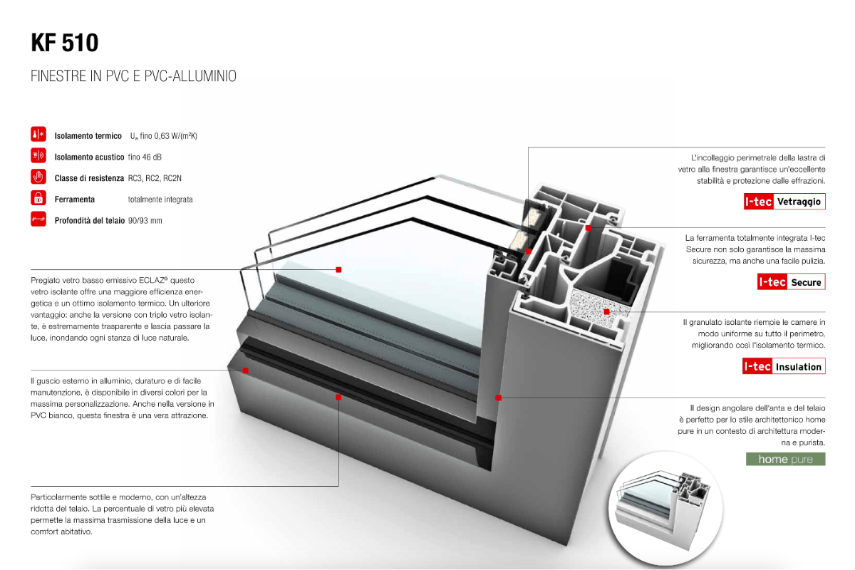 - Impatto ecologico nell’ambiente, infatti questi infissi sono considerati ecologici perché riducono significativamente i consumi energetici (riscaldamento/raffrescamento) grazie all'elevato isolamento termico, diminuendo così le emissioni di CO2, e perché utilizzano materiali eco-compatibili come il PVC senza piombo e con certificazione di classe A+ per le VOC (Composti Organici Volatili), puntando sulla sostenibilità produttiva e sul riciclo dei materiali.