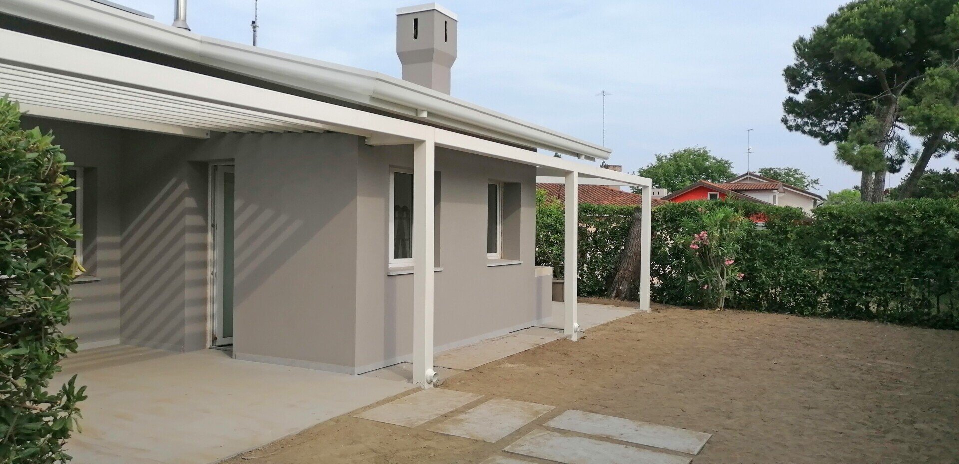 Installazione serramenti in PVC e progettazione, realizzazione e installazione di tettoia esterna in alluminio per Villetta privata.