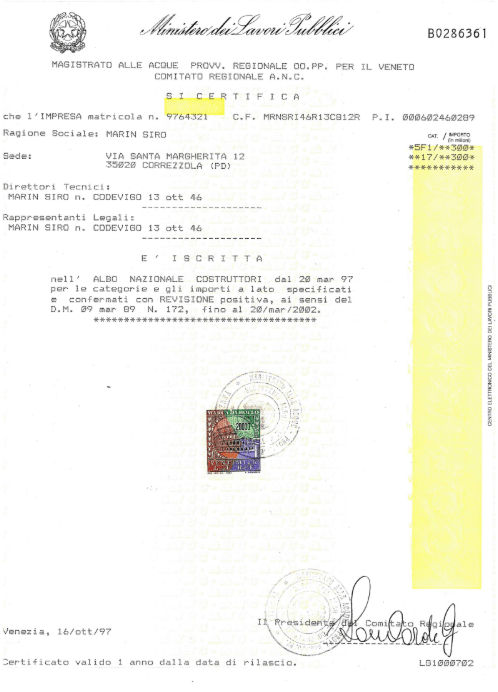 Iscrizione all’ Albo Nazionale Costruttori per esecuzione di Lavori Pubblici