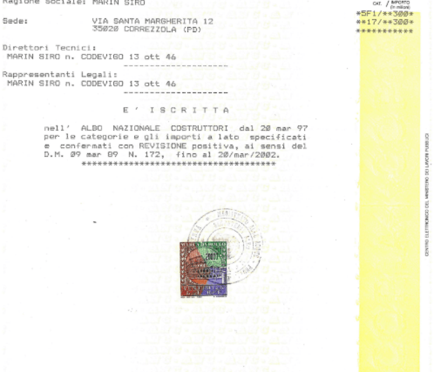 Dal 2005 la Siro Marin lavora con sistema certificato UNI EN ISO 9001, che garantisce la massima qualità dalla gestione aziendale, ai prodotti e materiali offerti, sino alla posa in opera e post-vendita.