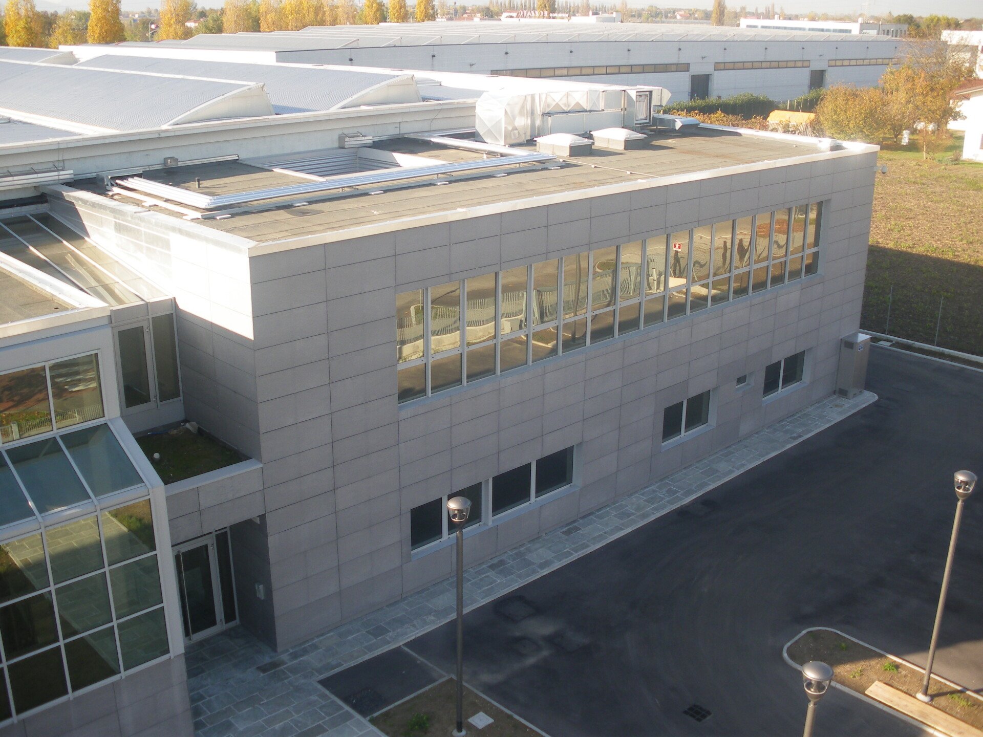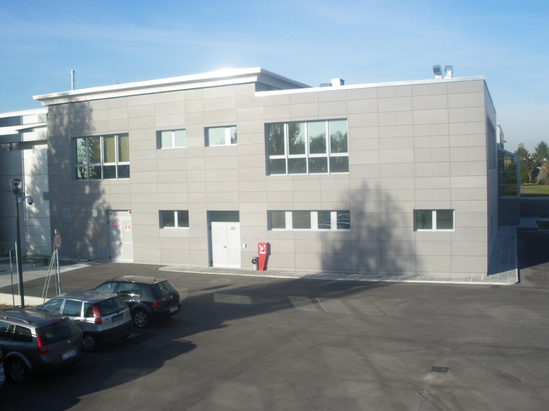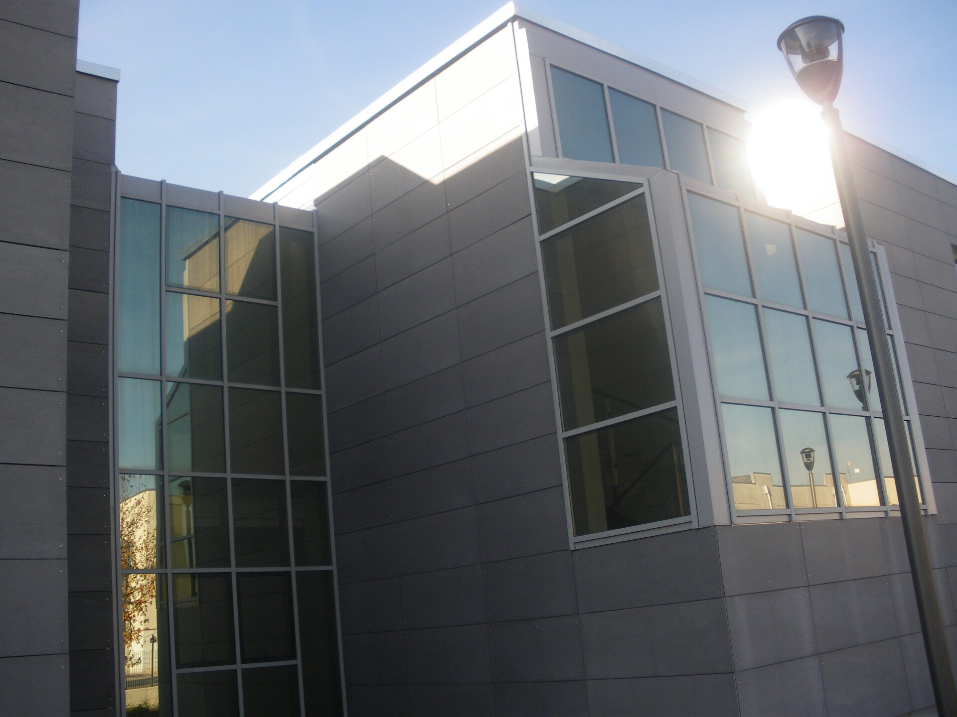 Per questo edificio commerciale sono state realizzate le facciate continue, gli infissi interni ed esterni, carpenterie metalliche, recinzioni e rivestimento esterno in lamiera di alluminio tipo Aluco-bond.