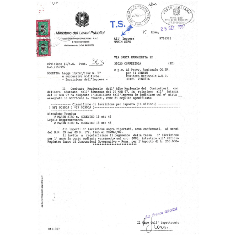Con l’ingresso dei tre figli in azienda, Siro Marin si espande nel settore degli appalti pubblici e dei cantieri industriali, portando innovazione e organizzazione.