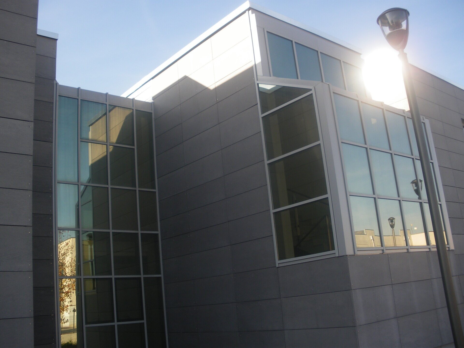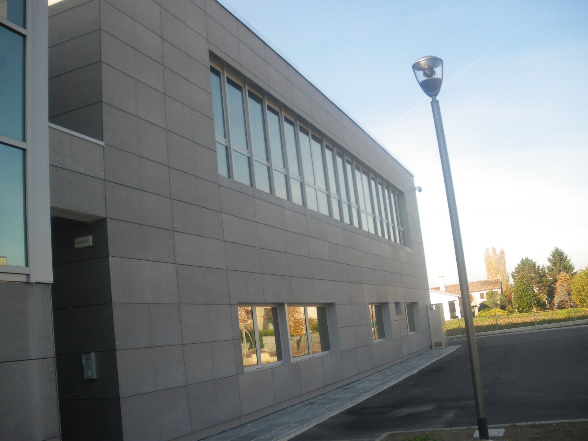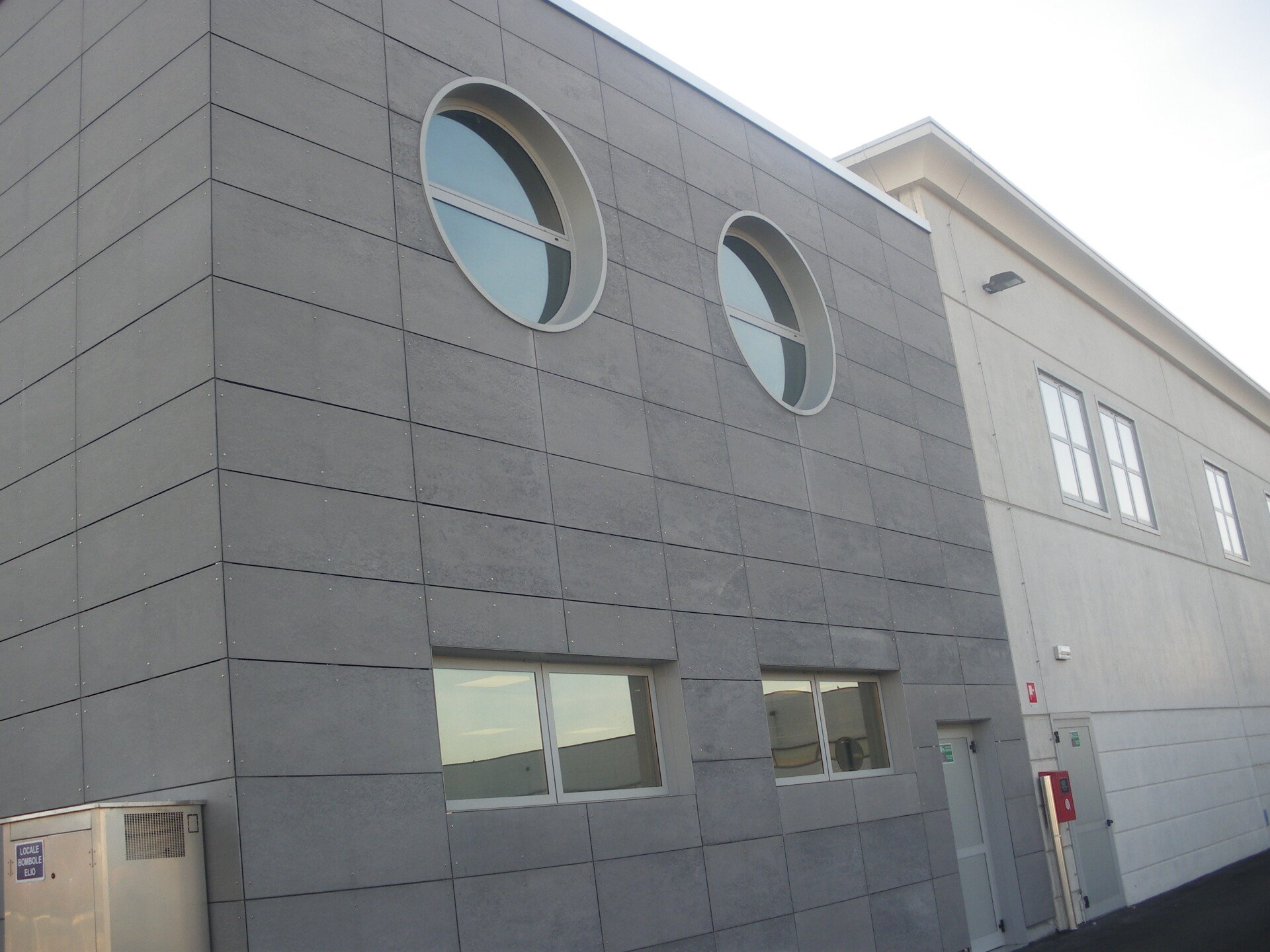 Per questo edificio commerciale sono state realizzate le facciate continue, gli infissi interni ed esterni, carpenterie metalliche, recinzioni e rivestimento esterno in lamiera di alluminio tipo Aluco-bond.