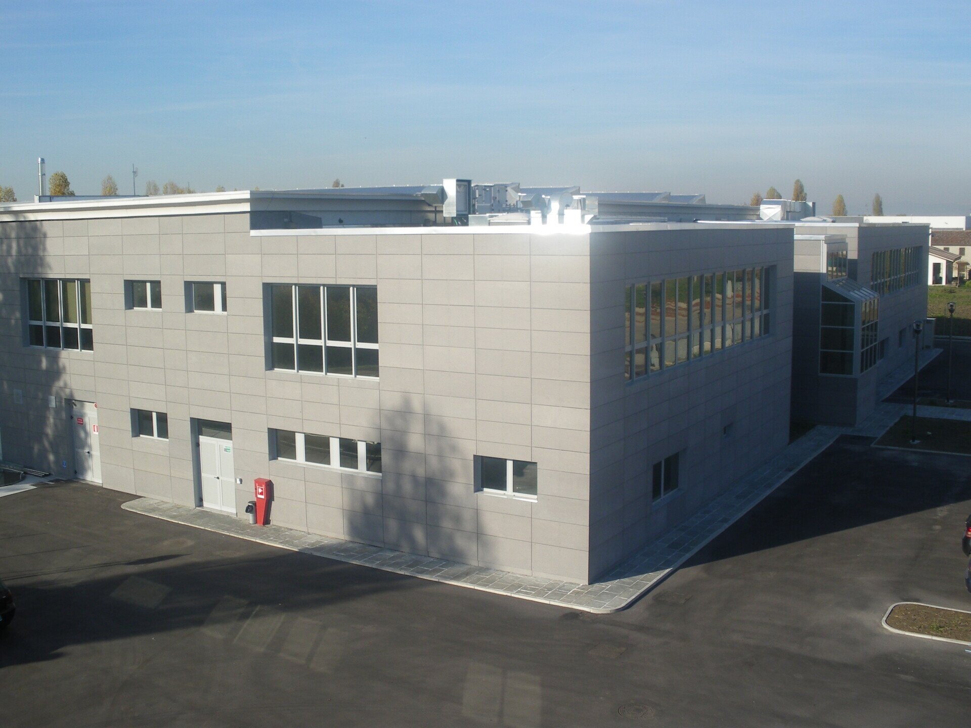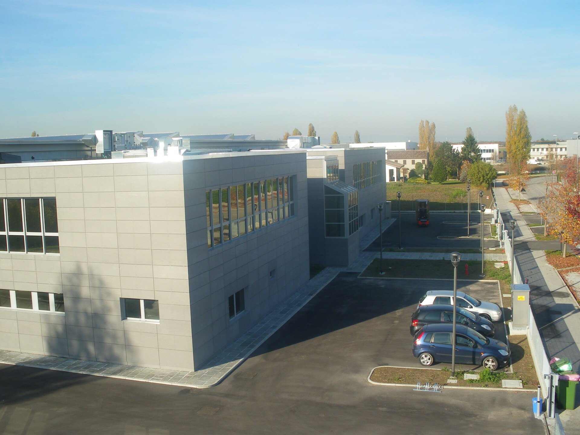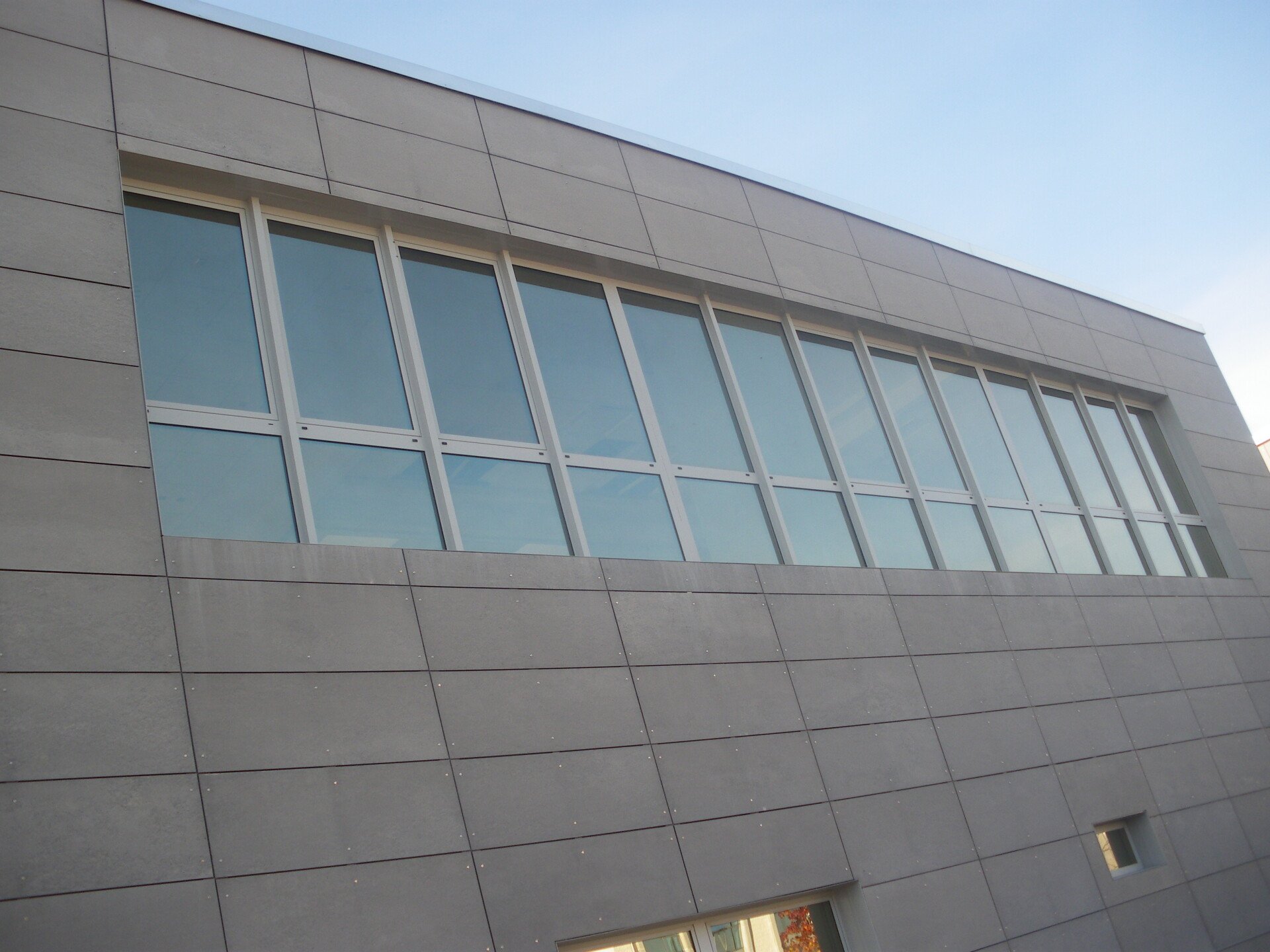 Per questo edificio commerciale sono state realizzate le facciate continue, gli infissi interni ed esterni, carpenterie metalliche, recinzioni e rivestimento esterno in lamiera di alluminio tipo Aluco-bond.
