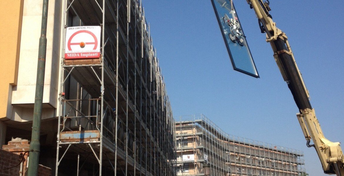 Numeri dell'intervento: totali mq. 760,00 di infissi.