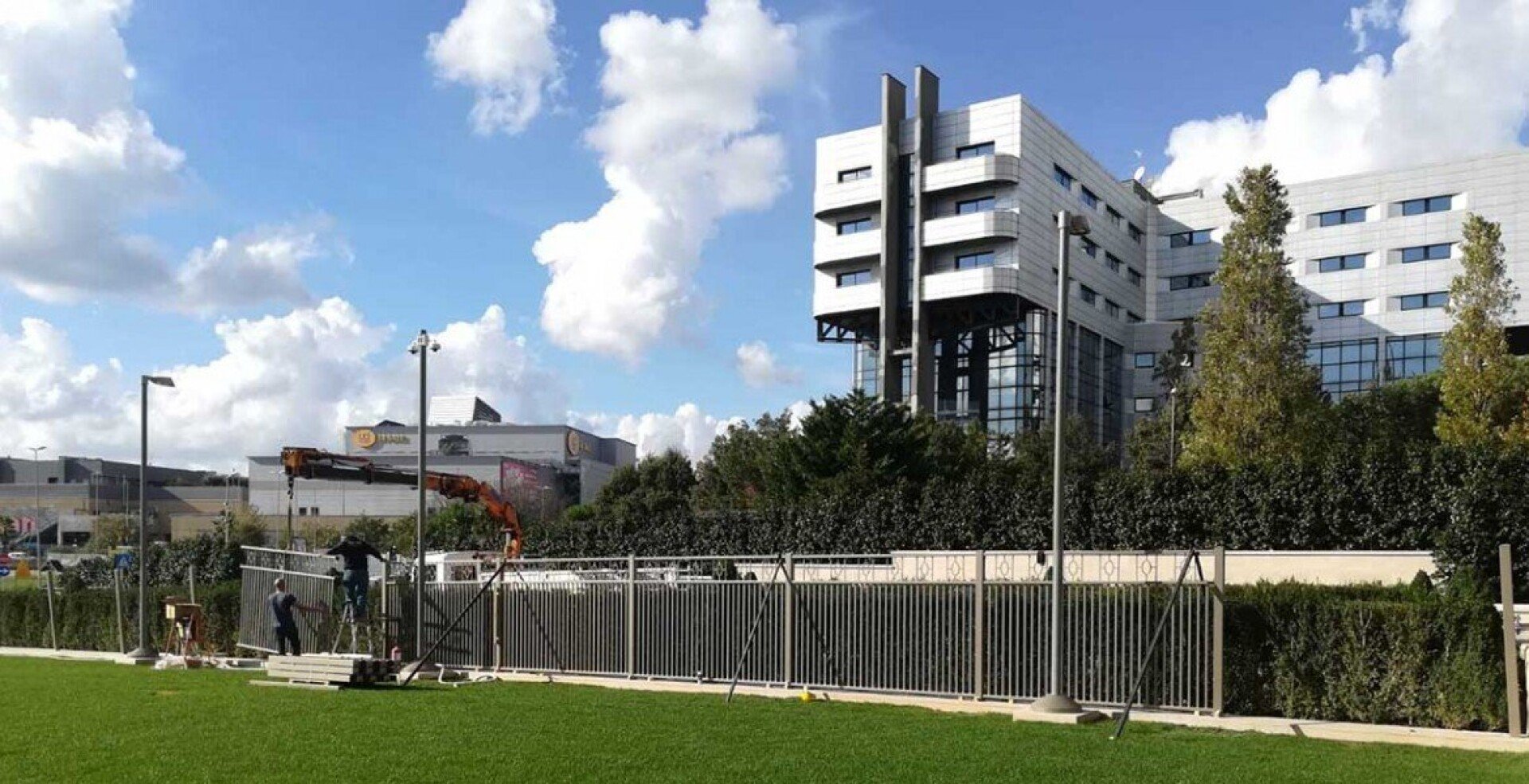La Siro Marin ha realizzazione per questo intervento gli infissi esterni e le strutture metalliche: mq. 370,00 di vetrate artistiche in acciaio zincato e verniciato tipo "Ferrofinestra", e mq. 1800,00 tra cancelli, parapetti e recinzioni esterne.